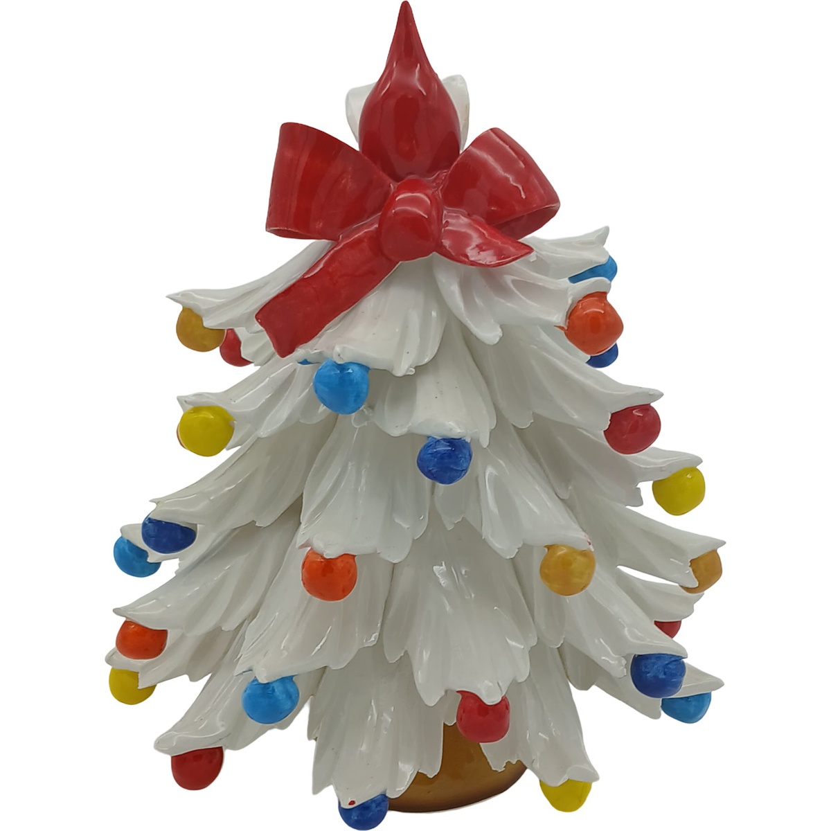 Ceramic Green Christmas tree with coloured baubles measuring 20cm in height and 16cm in width