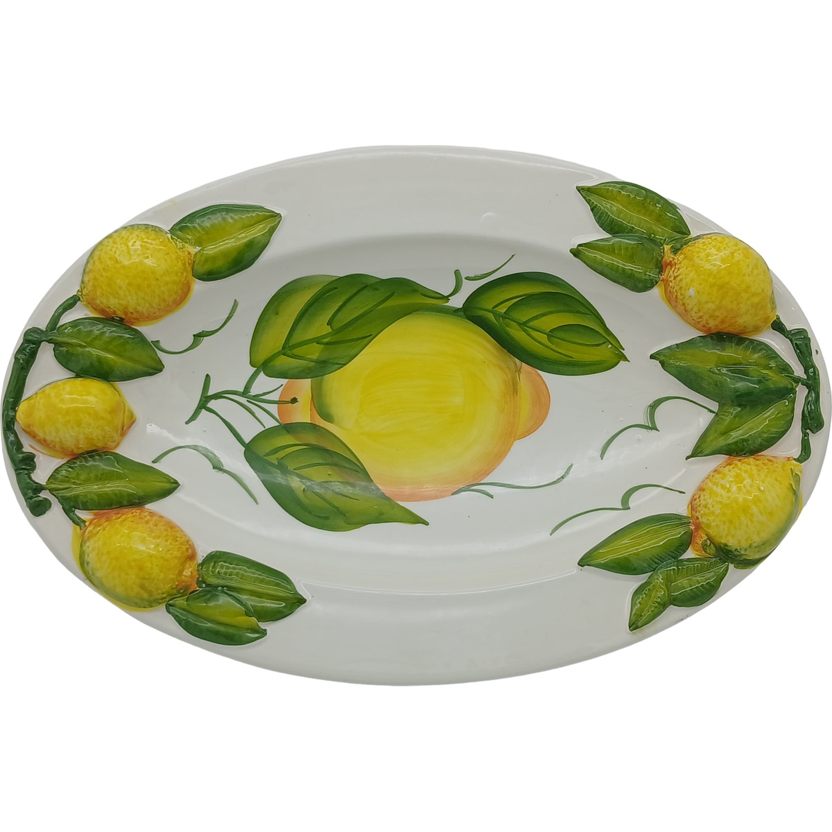 Ceramic lemon design hand painted oval dish measuring 30x20cm